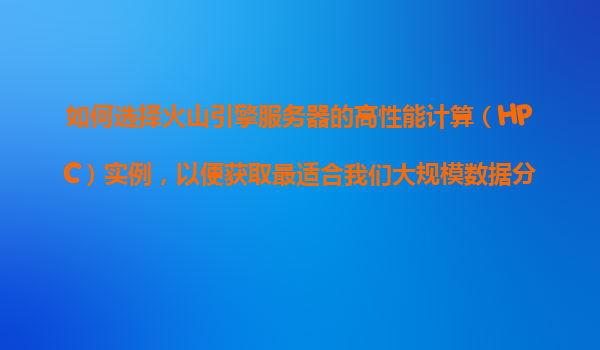 2025-11-08如何選擇火山引擎服務(wù)器的高性能計(jì)算(HPC)實(shí)例,以便獲取最適合我們大規(guī)模數(shù)據(jù)分析的算力支持? 引言 在當(dāng)今的數(shù)字化時(shí)代,大規(guī)模數(shù)據(jù)分析已成為企業(yè)決策和業(yè)務(wù)發(fā)展的關(guān)鍵驅(qū)動(dòng)力。為了高效處理海量數(shù)據(jù),...