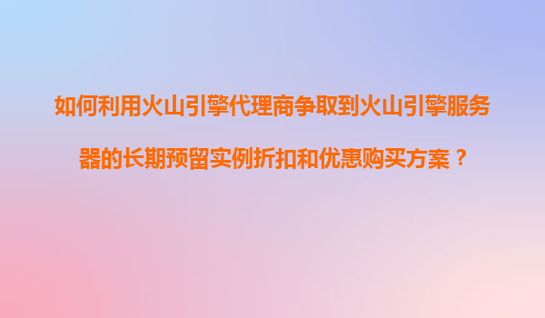2025-11-05如何利用火山引擎代理商爭取到火山引擎服務(wù)器的長期預(yù)留實(shí)例折扣和優(yōu)惠購買方案? 一、火山引擎服務(wù)器的核心優(yōu)勢 火山引擎作為字節(jié)跳動(dòng)旗下的云計(jì)算服務(wù)品牌,其服務(wù)器產(chǎn)品具備以下...