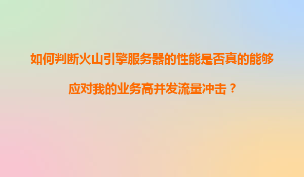 2025-11-06如何評估火山引擎服務(wù)器是否能應(yīng)對高并發(fā)流量沖擊 理解業(yè)務(wù)需求與并發(fā)場景特征 在評估火山引擎服務(wù)器性能前,需明確業(yè)務(wù)特征:包括預(yù)估峰值QPS、平均響應(yīng)時(shí)間要求、會(huì)話保持時(shí)長等關(guān)鍵指標(biāo)。典型高并...