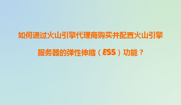 2025-11-06如何通過火山引擎代理商購買并配置火山引擎服務(wù)器的彈性伸縮(ESS)功能? 火山引擎簡介與優(yōu)勢 火山引擎是字節(jié)跳動(dòng)旗下的云計(jì)算服務(wù)平臺,為企業(yè)提供穩(wěn)定、高效、安全的云計(jì)算解決方案。...
