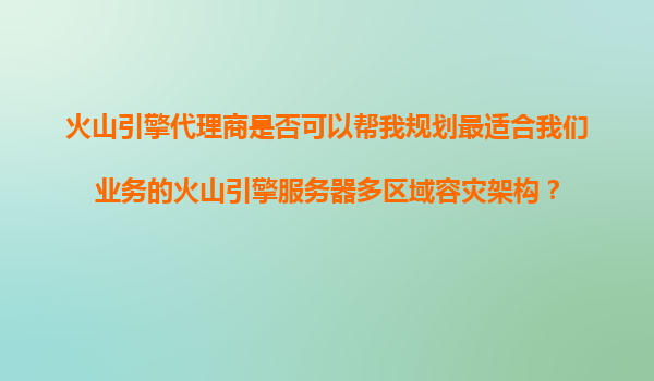 2025-11-06火山引擎代理商如何幫助企業(yè)規(guī)劃多區(qū)域容災(zāi)架構(gòu)? 一、企業(yè)業(yè)務(wù)連續(xù)性面臨的挑戰(zhàn) 在數(shù)字化時(shí)代,企業(yè)業(yè)務(wù)對IT基礎(chǔ)設(shè)施的依賴程度越來越高。任何服務(wù)器宕機(jī)、網(wǎng)絡(luò)中斷或自然災(zāi)害都可能導(dǎo)致業(yè)...