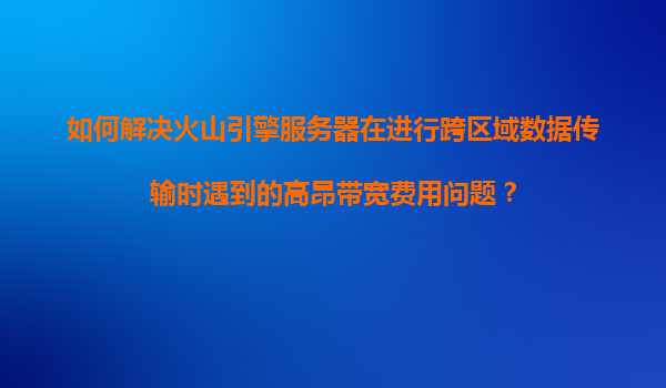 2025-11-06如何解決火山引擎服務(wù)器跨區(qū)域數(shù)據(jù)傳輸?shù)母甙簬捹M(fèi)用問題 一、問題背景與挑戰(zhàn) 在云計(jì)算場景中,跨區(qū)域數(shù)據(jù)傳輸是企業(yè)實(shí)現(xiàn)業(yè)務(wù)全球化部署的常見需求。然而,當(dāng)用戶使用火山引擎服務(wù)器進(jìn)行跨地域(如北京...