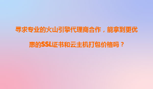 2025-11-04攜手火山引擎代理商解鎖SSL證書與云主機(jī)的成本最優(yōu)解 在數(shù)字化轉(zhuǎn)型浪潮中,企業(yè)對于云計(jì)算和網(wǎng)絡(luò)安全的需求持續(xù)攀升。如何以合理成本獲取專業(yè)可靠的SSL證書和云主機(jī)服務(wù),成為眾多企業(yè)關(guān)注的重點(diǎn)。通過與火山引擎...