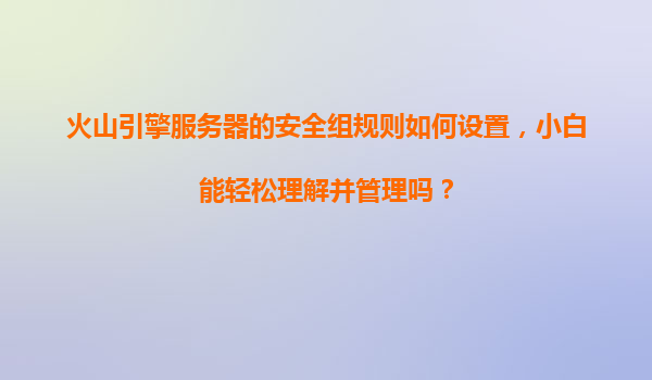 2025-11-04火山引擎服務(wù)器安全組規(guī)則設(shè)置指南:小白也能輕松掌握 一、什么是安全組?為什么需要設(shè)置? 安全組(SecurityGroup)是火山引擎提供的虛擬防火墻功能,用于控制云服務(wù)器實(shí)例的出入站網(wǎng)絡(luò)流量。簡單來...