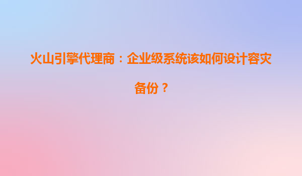 4008-020-360 火山引擎代理商:企業(yè)級(jí)系統(tǒng)容災(zāi)備份設(shè)計(jì)指南 一、企業(yè)級(jí)系統(tǒng)容災(zāi)備份的核心需求 企業(yè)級(jí)系統(tǒng)的容災(zāi)備份需滿(mǎn)足以下關(guān)鍵目標(biāo): 業(yè)務(wù)連續(xù)性保障:確保核心業(yè)務(wù)在災(zāi)難場(chǎng)景下快速恢復(fù) 數(shù)據(jù)...