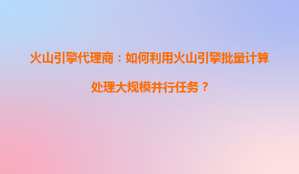 2025-04-04火山引擎代理商:如何利用火山引擎批量計算處理大規(guī)模并行任務(wù)? 一、火山引擎批量計算的核心優(yōu)勢 火山引擎作為字節(jié)跳動旗下的云服務(wù)平臺,其批量計算(BatchCompute)服務(wù)專為海量數(shù)據(jù)處理和高并發(fā)任務(wù)設(shè)...