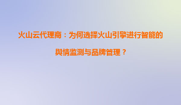 2025-03-30為何選擇火山引擎進行智能輿情監(jiān)測與品牌管理? 一、火山引擎的技術實力與全場景覆蓋能力 火山引擎作為字節(jié)跳動旗下的企業(yè)級技術服務平臺,依托字節(jié)跳動在內(nèi)容生態(tài)領域的海量數(shù)據(jù)處理經(jīng)驗,構...