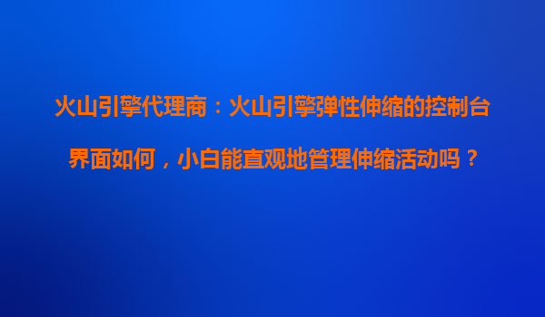 2025-10-30火山引擎代理商解讀:彈性伸縮控制臺(tái)如何讓小白輕松管理伸縮活動(dòng)? 一、火山引擎彈性伸縮的核心價(jià)值 火山引擎作為字節(jié)跳動(dòng)旗下的云計(jì)算服務(wù)品牌,其彈性伸縮(A...