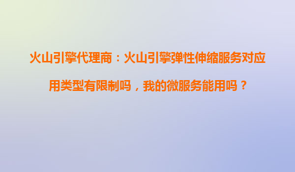2025-10-28火山引擎代理商:火山引擎彈性伸縮服務對應用類型有限制嗎? 作為火山引擎代理商,我們經(jīng)常被客戶詢問:“火山引擎彈性伸縮服務是否對應用類型有限制?我的微服務架構能否順利使用?”答案是肯定的——火山引擎彈性...