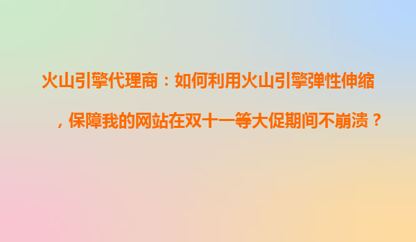 4008-020-360 火山引擎代理商:如何利用火山引擎彈性伸縮,保障我的網(wǎng)站在雙十一等大促期間不崩潰? 一、電商大促面臨的挑戰(zhàn)與彈性伸縮的價(jià)值 在雙十一、618等電商大促期間,流量可能瞬間暴增至日常的10倍甚至100倍。傳統(tǒng)固...