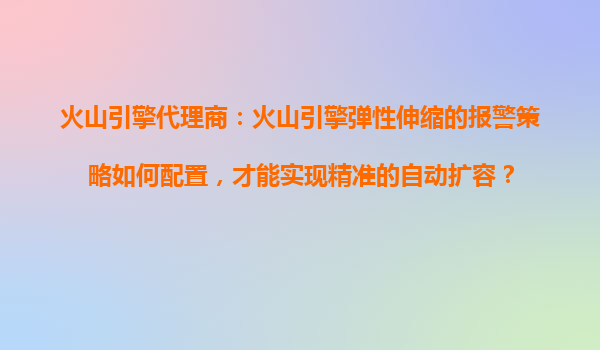 2025-10-27火山引擎代理商:火山引擎彈性伸縮的報(bào)警策略如何配置,才能實(shí)現(xiàn)精準(zhǔn)的自動(dòng)擴(kuò)容? 一、火山引擎彈性伸縮的優(yōu)勢(shì) 火山引擎作為字節(jié)跳動(dòng)旗下的云服務(wù)平臺(tái),其彈性伸縮(AutoScaling)服務(wù)以高效、智能、穩(wěn)定著稱(chēng)...