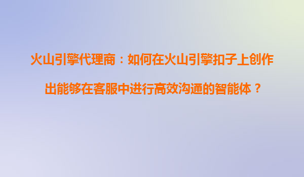 2025-10-27火山引擎代理商:如何在火山引擎扣子上創(chuàng)作出高效溝通的客服智能體? 一、火山引擎與扣子平臺(tái)的核心優(yōu)勢(shì) 火山引擎作為字節(jié)跳動(dòng)旗下的企業(yè)級(jí)技術(shù)服務(wù)平臺(tái),憑借...