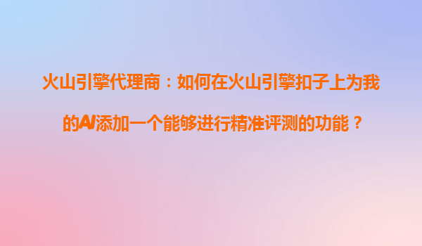 2025-10-27火山引擎代理商:為AI應(yīng)用添加精準(zhǔn)評(píng)測(cè)功能 作為火山引擎的代理商,我們深知在AI應(yīng)用開發(fā)中,精準(zhǔn)評(píng)測(cè)是驗(yàn)證模型效果、優(yōu)化迭代的關(guān)鍵環(huán)節(jié)。本文將詳細(xì)介紹如何利用火山引擎扣子平臺(tái)為您的AI應(yīng)用快速集成高效評(píng)...