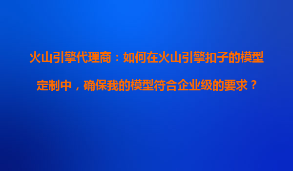 2025-10-27火山引擎代理商:如何在火山引擎扣子的模型定制中,確保模型符合企業(yè)級要求? 引言 隨著人工智能技術的快速發(fā)展,企業(yè)對于定制化模型的需求日益增長。火山引擎作為字節(jié)跳動旗下的云服務平臺,其扣子(VolcE...