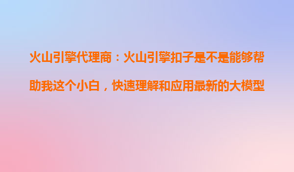2025-10-27火山引擎扣子:助力技術小白輕松駕馭大模型 在大模型技術快速發(fā)展的今天,許多非技術背景的用戶也對AI應用充滿興趣,卻苦于技術門檻過高。作為火山引擎的代理商,我們認為火山引擎扣子(VolcanoEngineCoze)恰好...