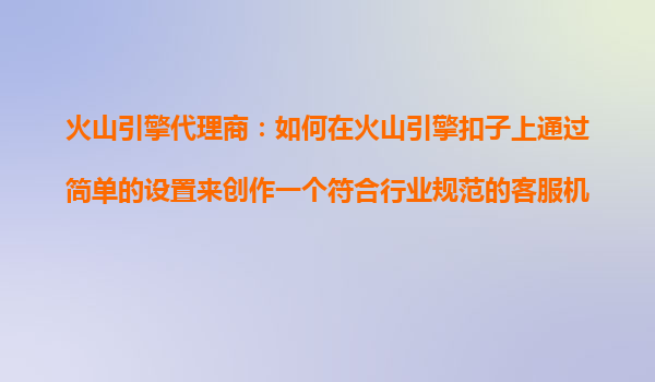 2025-10-26火山引擎代理商指南:如何通過簡單設置打造符合行業(yè)規(guī)范的客服機器人 一、火山引擎與代理商的核心優(yōu)勢 火山引擎作為字節(jié)跳動旗下的企業(yè)級技術(shù)服務平臺,其扣子(VolcBot)智能對話平臺融合了自然語言處理、...