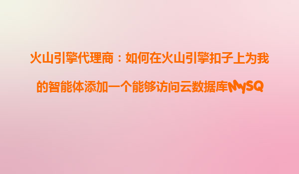2025-10-26火山引擎代理商指南:為智能體集成云數(shù)據(jù)庫MySQL版工具 火山引擎扣子平臺的核心優(yōu)勢 作為字節(jié)跳動旗下的云服務平臺,火山引擎憑借其高可靠性、彈性擴展和一站式解決方案,成為企業(yè)智能化轉(zhuǎn)型的首選。...