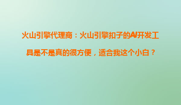 2025-10-26火山引擎代理商:火山引擎扣子的AI開發(fā)工具真的很方便,適合小白嗎? 作為火山引擎的代理商,我們經(jīng)常被問到“火山引擎扣子的AI開發(fā)工具是否真的適合沒有編程基礎(chǔ)的小白用戶?”“它的學(xué)習(xí)曲線平緩嗎?”今天...