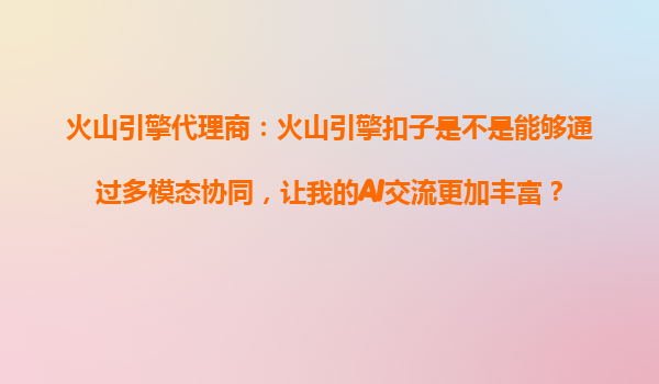 2025-10-26火山引擎扣子:多模態(tài)協(xié)同如何賦能AI交流的豐富性? 一、多模態(tài)協(xié)同:AI交流的下一站 在AI技術(shù)的快速發(fā)展中,單一的文本交互已無(wú)法滿足用戶對(duì)沉浸式體驗(yàn)的需求...