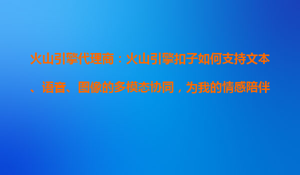 2025-10-24火山引擎代理商:火山引擎扣子如何為情感陪伴產(chǎn)品實(shí)現(xiàn)多模態(tài)協(xié)同賦能 一、情感陪伴產(chǎn)品的多模態(tài)需求與挑戰(zhàn) 在數(shù)字化情感陪伴領(lǐng)域,用戶對(duì)交互體驗(yàn)的要求日益多元化。單...
