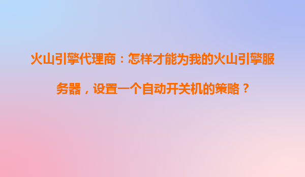 2025-10-23火山引擎代理商:如何為服務(wù)器配置自動(dòng)開關(guān)機(jī)策略? 一、火山引擎的智能化運(yùn)維優(yōu)勢(shì) 作為字節(jié)跳動(dòng)旗下的云服務(wù)平臺(tái),火山引擎提供高性能彈性計(jì)算資源與智能化運(yùn)維工具。其核心優(yōu)勢(shì)包括: 秒級(jí)...