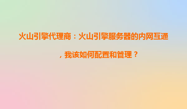2025-10-23火山引擎代理商:火山引擎服務(wù)器的內(nèi)網(wǎng)互通配置與管理指南 一、火山引擎內(nèi)網(wǎng)互通的核心優(yōu)勢(shì) 作為字節(jié)跳動(dòng)旗下的云計(jì)算服務(wù)平臺(tái),火山引擎提供高性能、低延遲的內(nèi)網(wǎng)互通服務(wù),其核心優(yōu)勢(shì)包括: ...