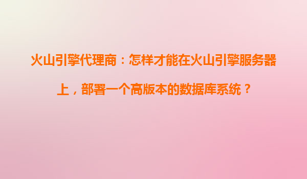 2025-10-23火山引擎代理商:如何在火山引擎服務器上部署高版本數(shù)據(jù)庫系統(tǒng) 一、火山引擎與代理商的核心優(yōu)勢 火山引擎作為字節(jié)跳動旗下的云計算服務平臺,提供高性能云服務器、彈性存儲及完善的PaaS服務組合。其代理商...