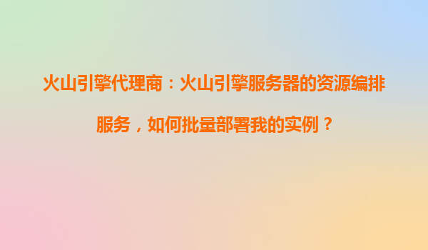 2025-10-23火山引擎代理商:火山引擎服務器的資源編排服務,如何批量部署我的實例? 一、火山引擎資源編排服務的核心優(yōu)勢 火山引擎作為字節(jié)跳動旗下的云服務平臺,其資源編排服務(ResourceOrchestrationService,R...