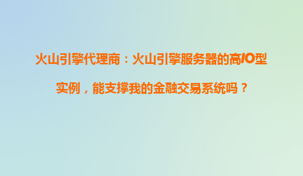 2025-10-22火山引擎代理商解析:火山引擎高IO型實例如何為金融交易系統(tǒng)保駕護航? 一、金融交易系統(tǒng)的核心需求與挑戰(zhàn) 金融交易系統(tǒng)對服務(wù)器的要求極為嚴苛,尤其是高頻交易、實時清算等場景,...