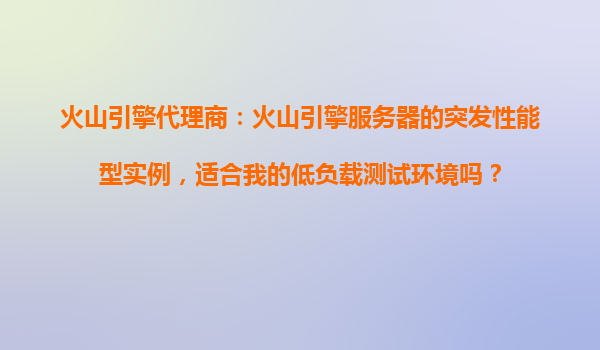 2025-10-21火山引擎突發(fā)性能型實例:低負載測試環(huán)境的理想選擇 對于開發(fā)者和企業(yè)來說,選擇適合的云服務器實例類型至關重要,尤其是針對低負載測試環(huán)境。火山引擎作為字節(jié)跳動旗下的云服務品牌,其突發(fā)性能型實例憑借...