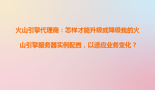 2025-10-21火山引擎代理商指南:靈活升級或降級服務器實例配置的完整方案 一、為什么選擇火山引擎?——核心優(yōu)勢解析 作為字節(jié)跳動旗下的企業(yè)級技術服務平臺,火山引擎憑...