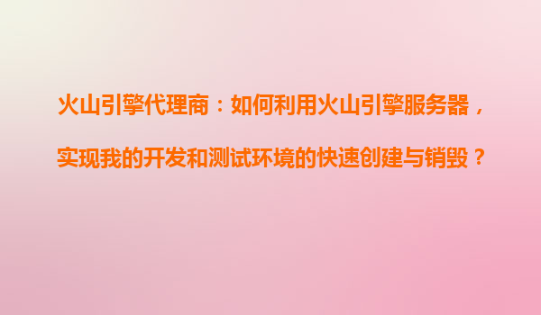 2025-10-20火山引擎代理商:如何利用火山引擎服務(wù)器,實(shí)現(xiàn)開發(fā)和測試環(huán)境的快速創(chuàng)建與銷毀? 引言 在當(dāng)今快速發(fā)展的云計(jì)算時(shí)代,開發(fā)和測試環(huán)境的快速創(chuàng)建與銷毀對于企業(yè)來說至關(guān)重要。火山引擎作為字節(jié)跳動(dòng)旗下的云...