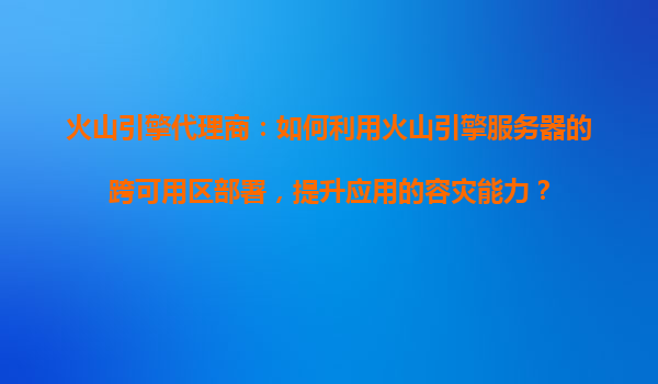 2025-10-20火山引擎代理商:如何利用火山引擎服務(wù)器的跨可用區(qū)部署,提升應(yīng)用的容災(zāi)能力? 引言 在當(dāng)今數(shù)字化時(shí)代,企業(yè)越來越依賴云計(jì)算來支撐業(yè)務(wù)運(yùn)營。如何確保應(yīng)用的高可用性和容災(zāi)能力成為企業(yè)關(guān)注的焦點(diǎn)。火山...