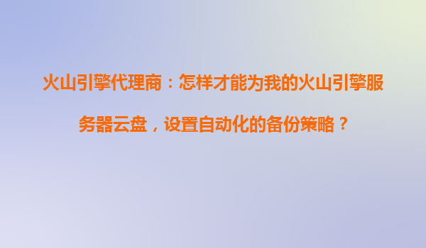 2025-10-20火山引擎代理商指南:如何為火山引擎服務(wù)器云盤設(shè)置自動(dòng)化備份策略 一、火山引擎服務(wù)器云盤備份的重要性 在數(shù)字化時(shí)代,數(shù)據(jù)是企業(yè)最寶貴的資產(chǎn)之一。火山引擎作為字節(jié)跳動(dòng)旗下的云計(jì)算服務(wù)平臺(tái),為企業(yè)提...