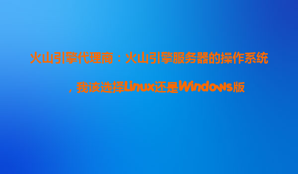 2025-10-18火山引擎代理商:火山引擎服務器的操作系統(tǒng),我該選擇Linux還是Windows版本? 一、火山引擎服務器的核心優(yōu)勢 作為字節(jié)跳動旗下的云計算服務品牌,火山引擎依托字節(jié)跳動海量業(yè)務的技術沉淀,在服務器性...
