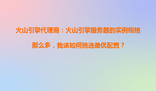 2025-10-18火山引擎代理商:火山引擎服務器的實例規(guī)格那么多,我該如何挑選最優(yōu)配置? 一、火山引擎服務器的核心優(yōu)勢 火山引擎作為字節(jié)跳動旗下的云服務平臺,依托其強大的技術和生態(tài)支持,在服務器實例規(guī)格...