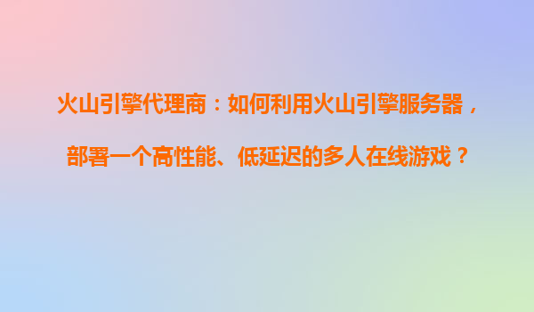 2025-10-18火山引擎代理商:如何利用火山引擎服務器,部署一個高性能、低延遲的多人在線游戲? 一、火山引擎的核心優(yōu)勢與游戲場景匹配 作為字節(jié)跳動旗下的云服務平臺,火山引擎為游戲開發(fā)者提供了獨特的解決方案: ...