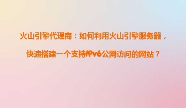 2025-10-18火山引擎代理商:如何利用火山引擎服務器,快速搭建一個支持IPv6公網(wǎng)訪問的網(wǎng)站? 一、火山引擎的核心優(yōu)勢 作為字節(jié)跳動旗下的云服務平臺,火山引擎憑借以下特性為代理商和企業(yè)提供高效解決方案: ...