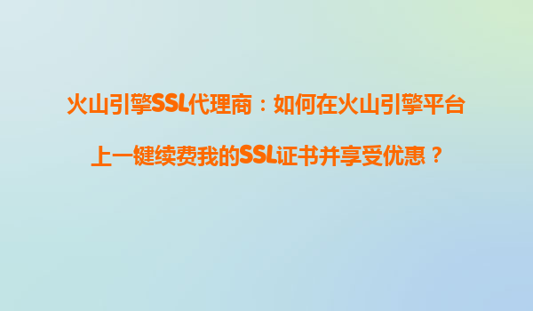 4008-020-360 火山引擎SSL代理商:如何在火山引擎平臺上一鍵續(xù)費我的SSL證書并享受優(yōu)惠? 一、火山引擎SSL證書服務(wù)的核心優(yōu)勢 作為字節(jié)跳動旗下的云服務(wù)平臺,火山引擎為企業(yè)和開發(fā)者提供高效、安全的SSL證...