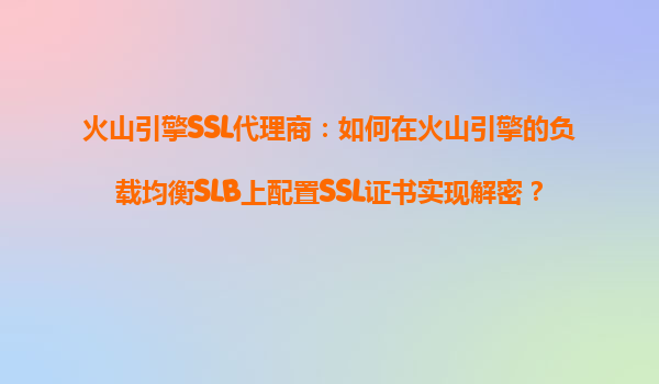 2025-10-16火山引擎SSL代理商:如何在火山引擎的負載均衡SLB上配置SSL證書實現(xiàn)解密? 引言 隨著互聯(lián)網(wǎng)安全的重要性日益凸顯,SSL證書已成為保障數(shù)據(jù)傳輸安全和提升用戶信任度的關(guān)鍵工具。火...