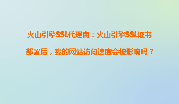 2025-10-16火山引擎SSL代理商:火山引擎SSL證書部署后,我的網(wǎng)站訪問速度會被影響嗎? 一、SSL證書對網(wǎng)站訪問速度的影響 在部署SSL證書后,許多人會擔(dān)心網(wǎng)站的訪問速度是否會受到影響。實際上,SSL證書的部署確實會對網(wǎng)站的訪...
