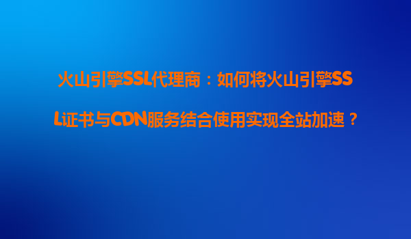 2025-10-16火山引擎SSL代理商:如何將火山引擎SSL證書與CDN服務(wù)結(jié)合使用實現(xiàn)全站加速? 一、引言 在當(dāng)今數(shù)字化時代,網(wǎng)站的安全性和訪問速度是影響用戶體驗的關(guān)鍵因素。SSL證書能夠保障數(shù)據(jù)傳...