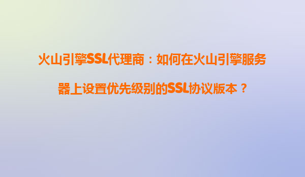 2025-10-17火山引擎SSL代理商:如何在火山引擎服務(wù)器上設(shè)置優(yōu)先級別的SSL協(xié)議版本? 一、SSL協(xié)議版本簡介 SSL(SecureSocketsLayer)協(xié)議是保障網(wǎng)絡(luò)通信安全的重要技術(shù),主要用于加密客戶端與服務(wù)器之...