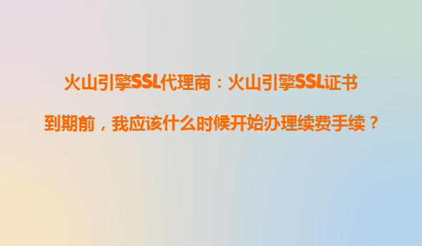 2025-10-17火山引擎SSL代理商:火山引擎SSL證書到期前,我應(yīng)該什么時候開始辦理續(xù)費手續(xù)? SSL證書續(xù)費的重要性與時間規(guī)劃 在數(shù)字化時代,SSL證書已成為網(wǎng)站安全運營的基礎(chǔ)保障。一旦SSL證書過期,網(wǎng)站將面臨數(shù)據(jù)...