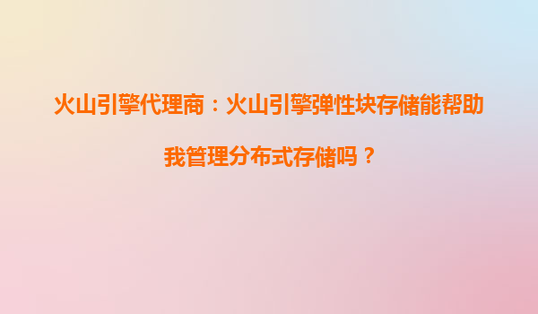 2025-10-15火山引擎代理商:火山引擎彈性塊存儲(chǔ)如何助力企業(yè)高效管理分布式存儲(chǔ)? 一、分布式存儲(chǔ)的挑戰(zhàn)與火山引擎的解決方案 隨著企業(yè)數(shù)字化轉(zhuǎn)型加速,分布式存儲(chǔ)需求激增,但傳統(tǒng)方案往往面臨擴(kuò)展性不足、管理復(fù)雜...