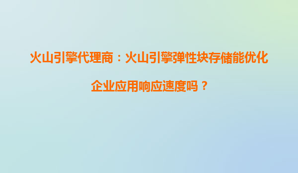2025-10-10火山引擎代理商:火山引擎彈性塊存儲(chǔ)如何優(yōu)化企業(yè)應(yīng)用響應(yīng)速度? 引言:企業(yè)應(yīng)用響應(yīng)速度的挑戰(zhàn) 在數(shù)字化時(shí)代,企業(yè)應(yīng)用的響應(yīng)速度直接影響用戶(hù)體驗(yàn)和業(yè)務(wù)效率...