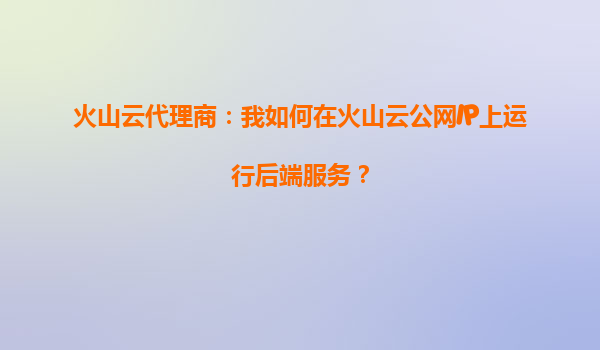 2025-10-03火山云代理商指南:如何在火山云公網(wǎng)IP上高效運行后端服務(wù) 一、火山云公網(wǎng)IP的核心價值 火山引擎(VolcanoEngine)作為字節(jié)跳動旗下的云計算服務(wù)平臺,其公網(wǎng)IP服務(wù)具備以下核心優(yōu)勢: ...