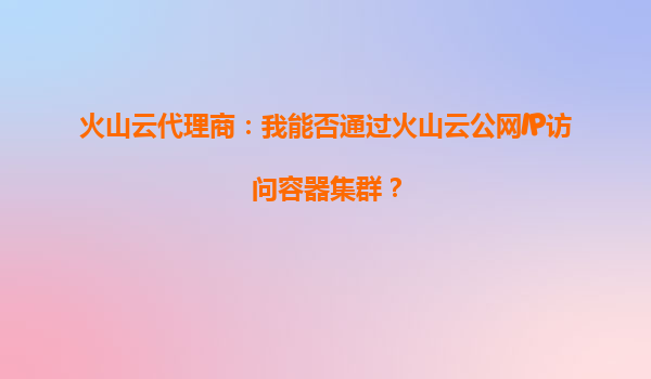 4008-020-360 火山云代理商指南:通過公網(wǎng)IP訪問容器集群的可行性及優(yōu)勢解析 一、火山云公網(wǎng)IP訪問容器集群的核心問題 作為火山云代理商或用戶,能否通過公網(wǎng)IP直接訪問容器集群,取決于火山引擎的技術(shù)架構(gòu)和權(quán)限配置。...