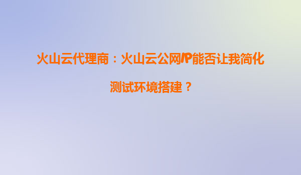 2025-10-03火山云代理商:火山云公網(wǎng)IP能否讓我簡化測試環(huán)境搭建? 一、測試環(huán)境搭建的痛點與需求 在軟件開發(fā)與測試過程中,搭建穩(wěn)定、高效的測試環(huán)境是團隊面臨的首要挑戰(zhàn)之一。傳統(tǒng)方式通常需要...