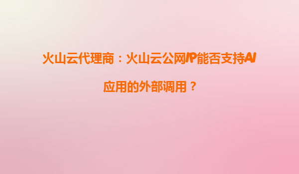 2025-10-01火山云代理商:火山云公網(wǎng)IP能否支持AI應(yīng)用的外部調(diào)用? 一、火山云公網(wǎng)IP的核心能力 火山引擎提供的公網(wǎng)IP服務(wù),是云計算基礎(chǔ)設(shè)施的重要組成部分,具備高可用性、彈性擴(kuò)展和全球覆蓋的特點。通過...